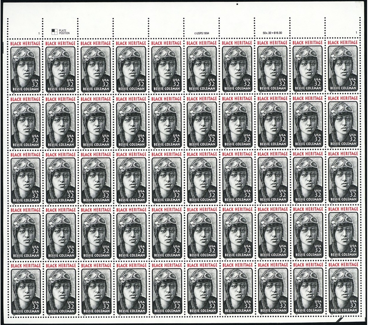Bessie Coleman Black Heritage Sheet of Fifty 32 Cent Postage Stamps Scott 2956