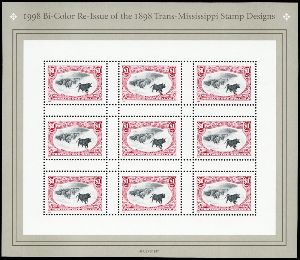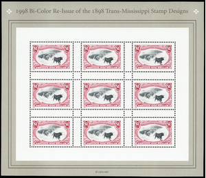 Bi-Color Re-Issue of the 1898 Trans-Mississippi "Black Bull" Sheet Scott 3210