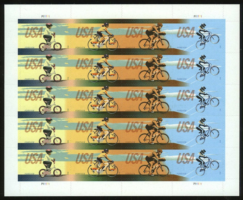 Bicycling Sheet of 20 Current Rate Stamps Scott 4687-90
