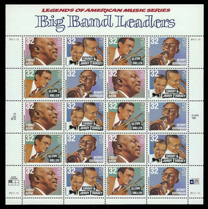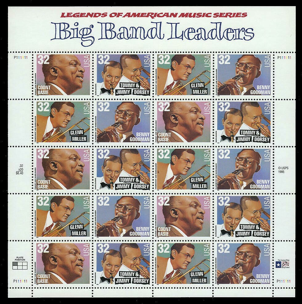 Big Band Leaders Music Legends 32 Cent Sheet of 20 Postage Stamps Scott 3096-99