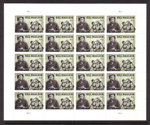 Bill Mauldin Sheet of Twenty 44 Cent Postage Stamps Scott 4445