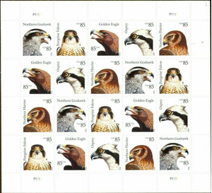 Birds of Prey Sheet of Twenty 85 Cent Postage Stamps Scott 4608-12