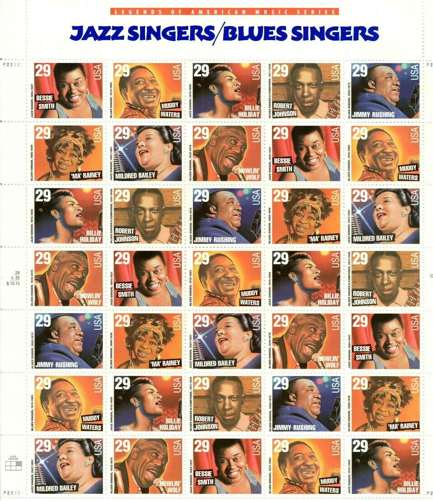 Blues and Jazz Singers Sheet of Thirty Five 29 Cent Stamps Scott 2854-61