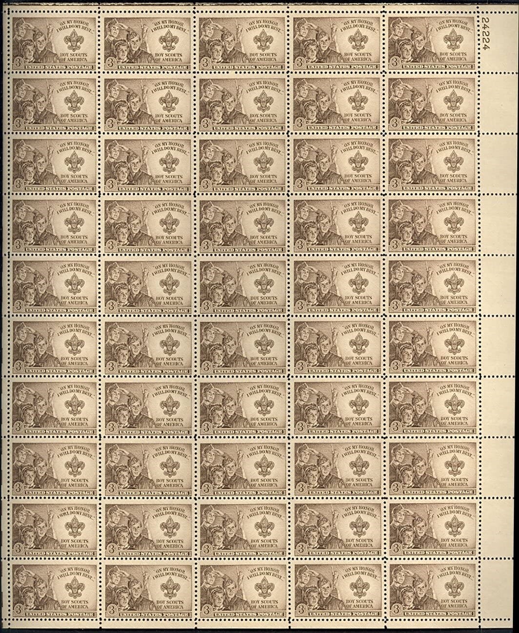 Boy Scout Badge Sheet of Fifty 3 Cent Vintage Postage Stamp Scott 995