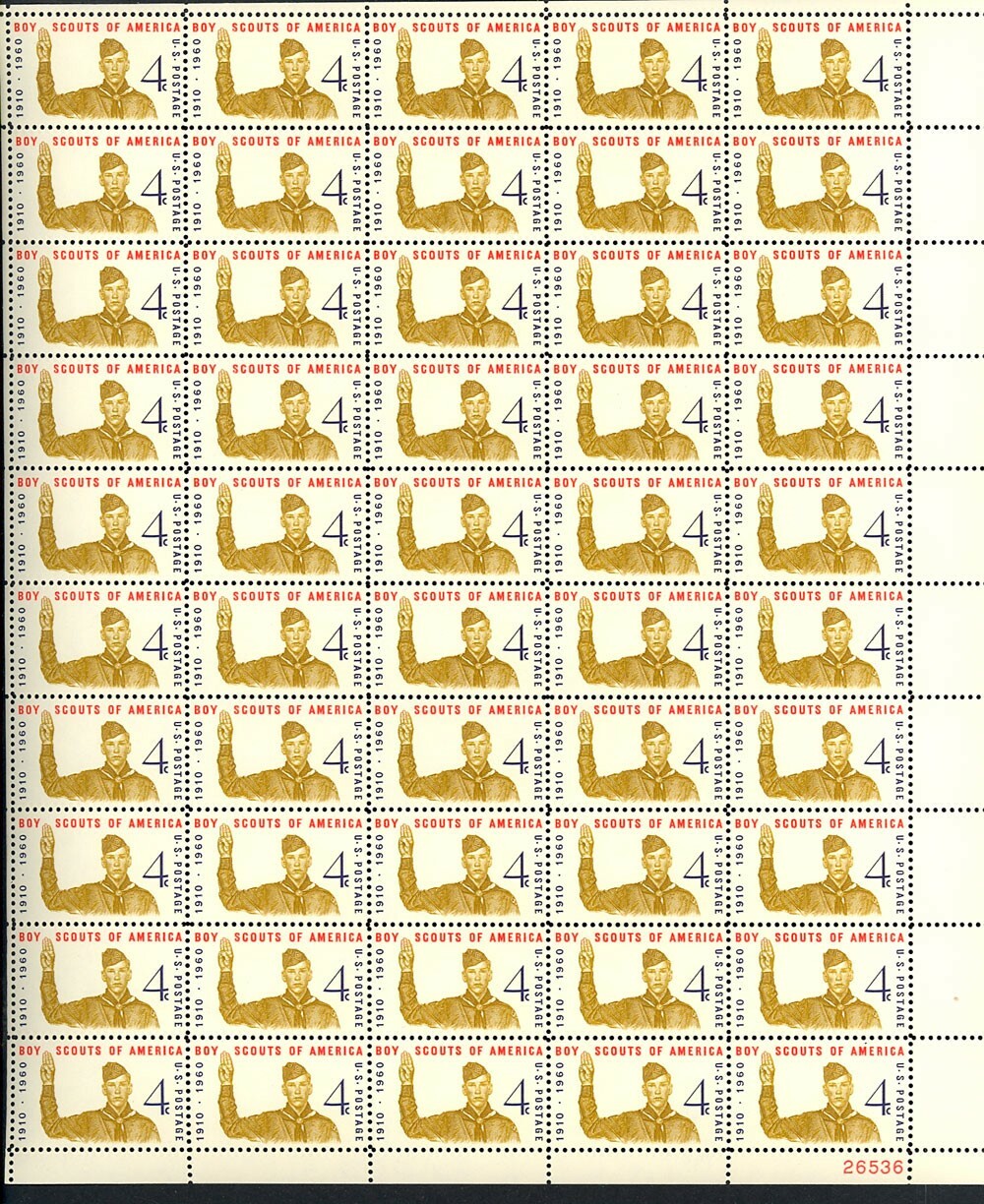 Boy Scouts Sheet of Fifty 4 Cent Vintage Postage Stamps Scott 1145