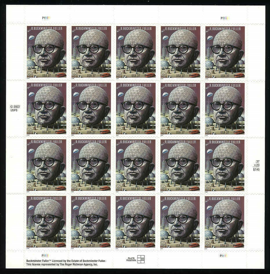 Buckminster Fuller Full Sheet of Twenty 37 Cent Postage Stamps Scott 3870
