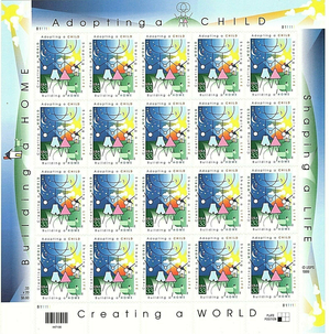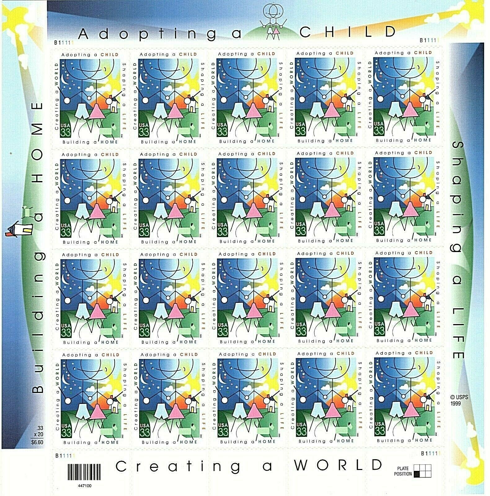 Building A Home Adopting a Child Sheet of Twenty 33 Cent Stamps Scott 3398