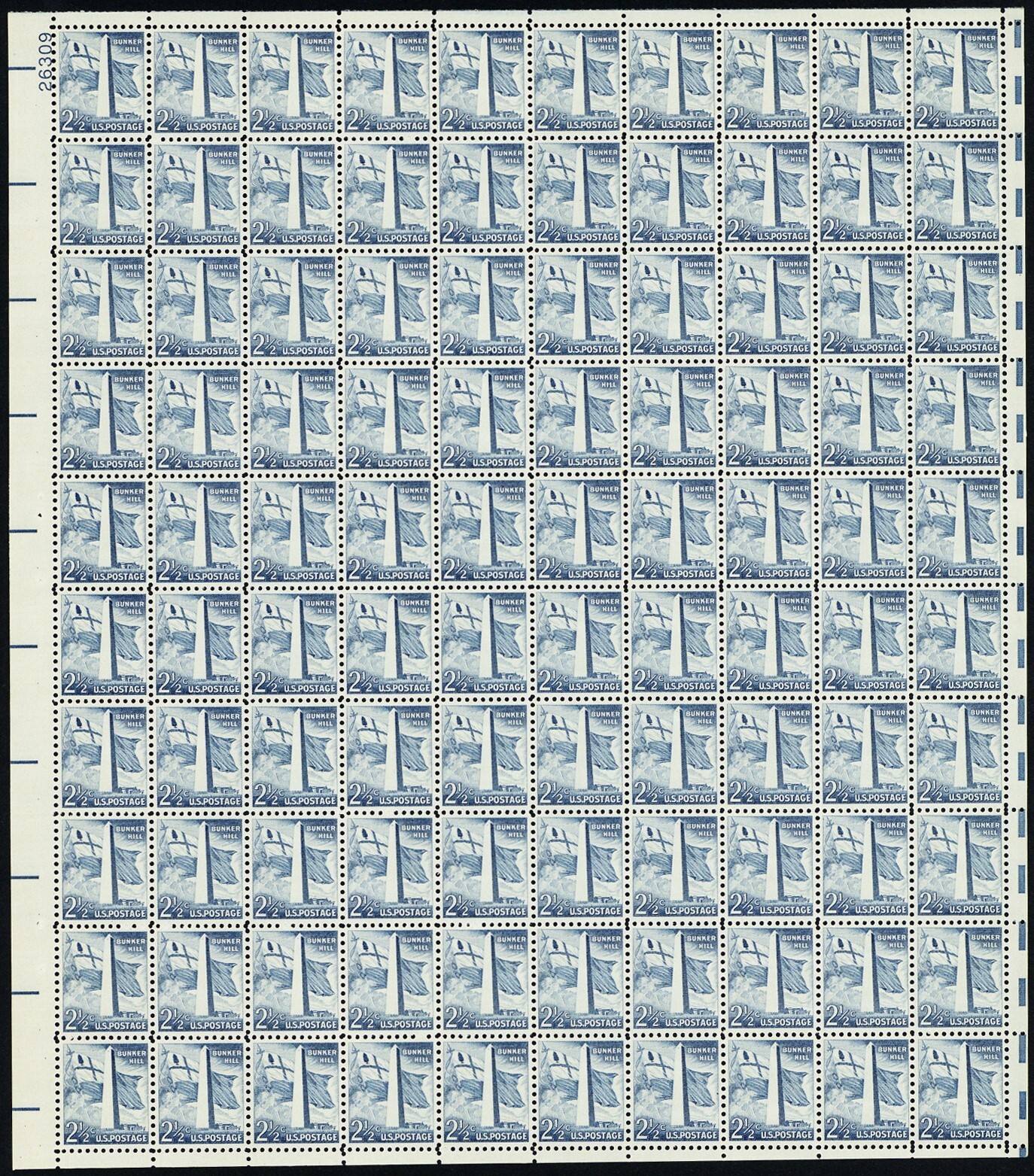 Bunker Hill Sheet of 100 - 2 1/2 Cent Postage Stamps Scott 1034
