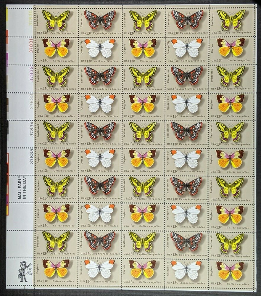 Butterfly Series Sheet of Fifty 13 Cent Postage Stamps Scott 1712-15