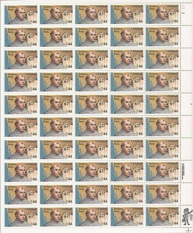 C116 Complete Sheet of 50 FR. Junipero Serra 44 Cent Airmail Stamp - Stuart Katz