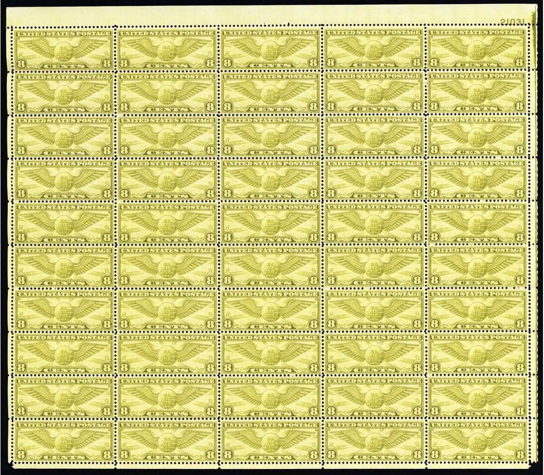 C17, Mint NH 8¢ "Wings" VF Complete Sheet of 50 Bookman $225.00 ^ Stuart Katz