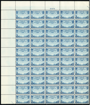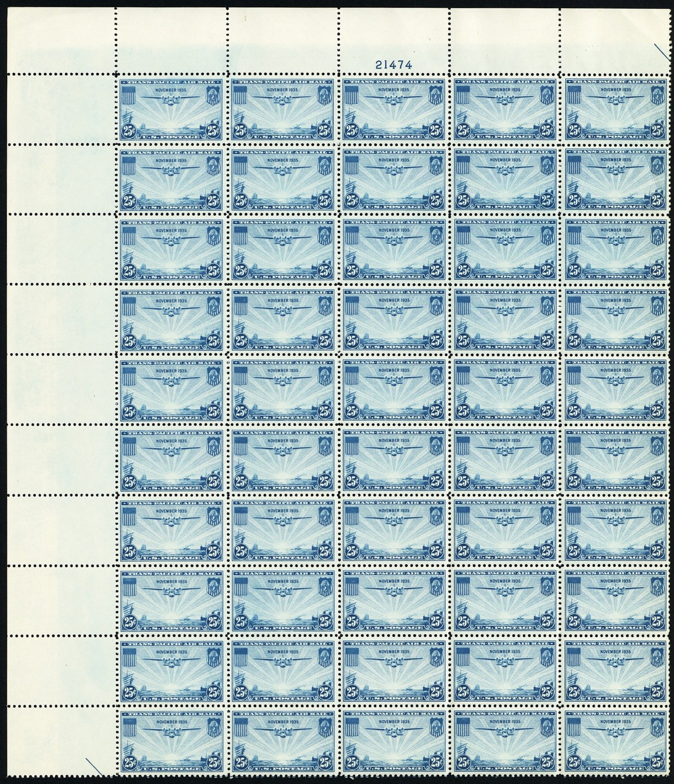 C20, Mint NH 25¢ Airmail Complete Top PL# Sheet of 50 * Stuart Katz