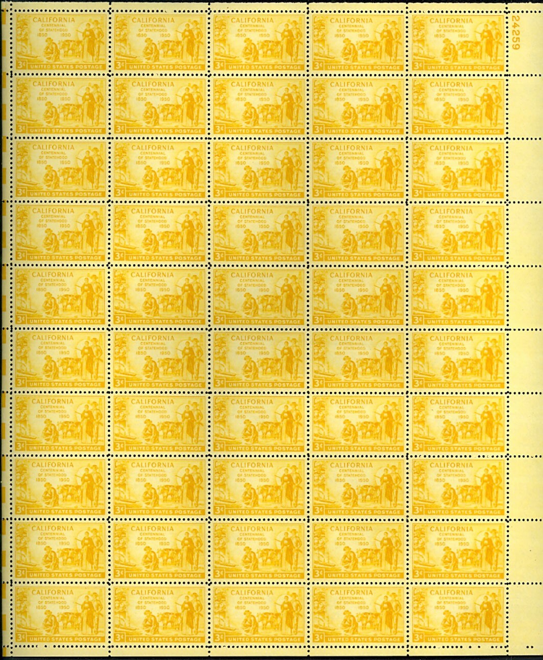 California Gold Miner Pioneers Sheet of Fifty 3 Cent Postage Stamps Scott 997
