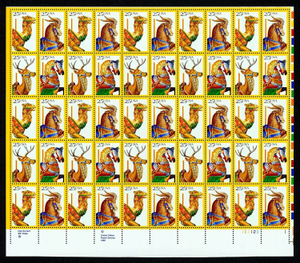 Carousel Horses Full Pane of Fifty 25 Cent Postage Stamps Scott 2390-93