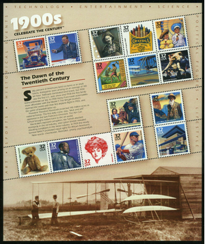 Celebrate the Century 1900's Sheet of Fifteen 32 Cent Postage Stamps Scott 3182