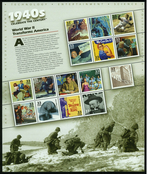 Celebrate the Century 1940's Sheet of Fifteen 33 Cent Postage Stamps Scott 3186