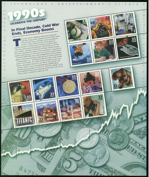 Celebrate the Century 1990's Sheet of Fifteen 33 Cent Postage Stamps Scott 3191