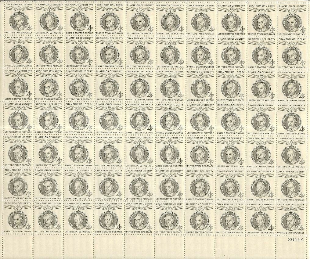 Champions of Liberty Ernst Reuter Sheet of Seventy 4 Cent Stamps Scott 1136