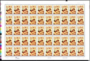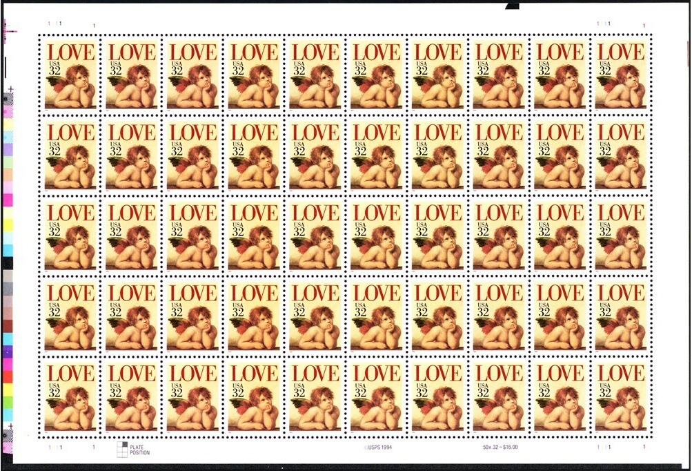 Charub Love 32 Cent Stamps Sheet of Fifty Postage Stamps Scott 2957