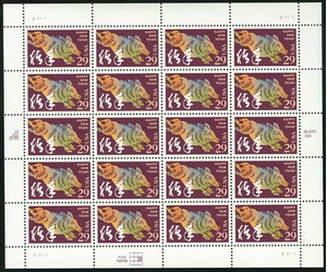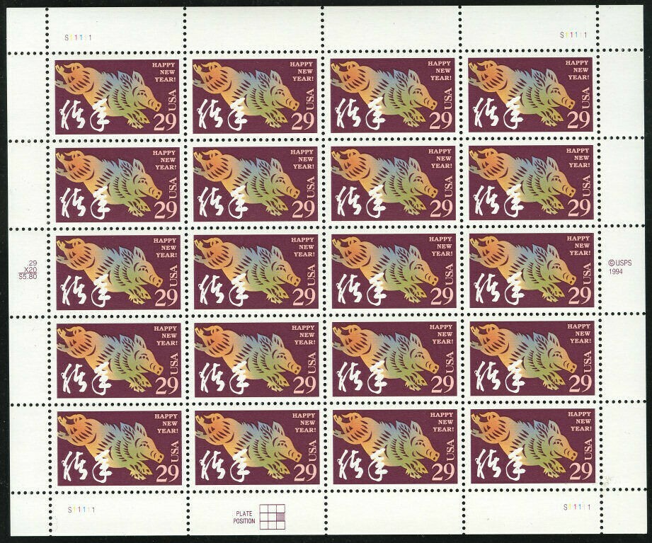 Chinese New Year of the Boar Sheet of Twenty 37 Cent Postage Stamps Scott 2876