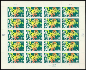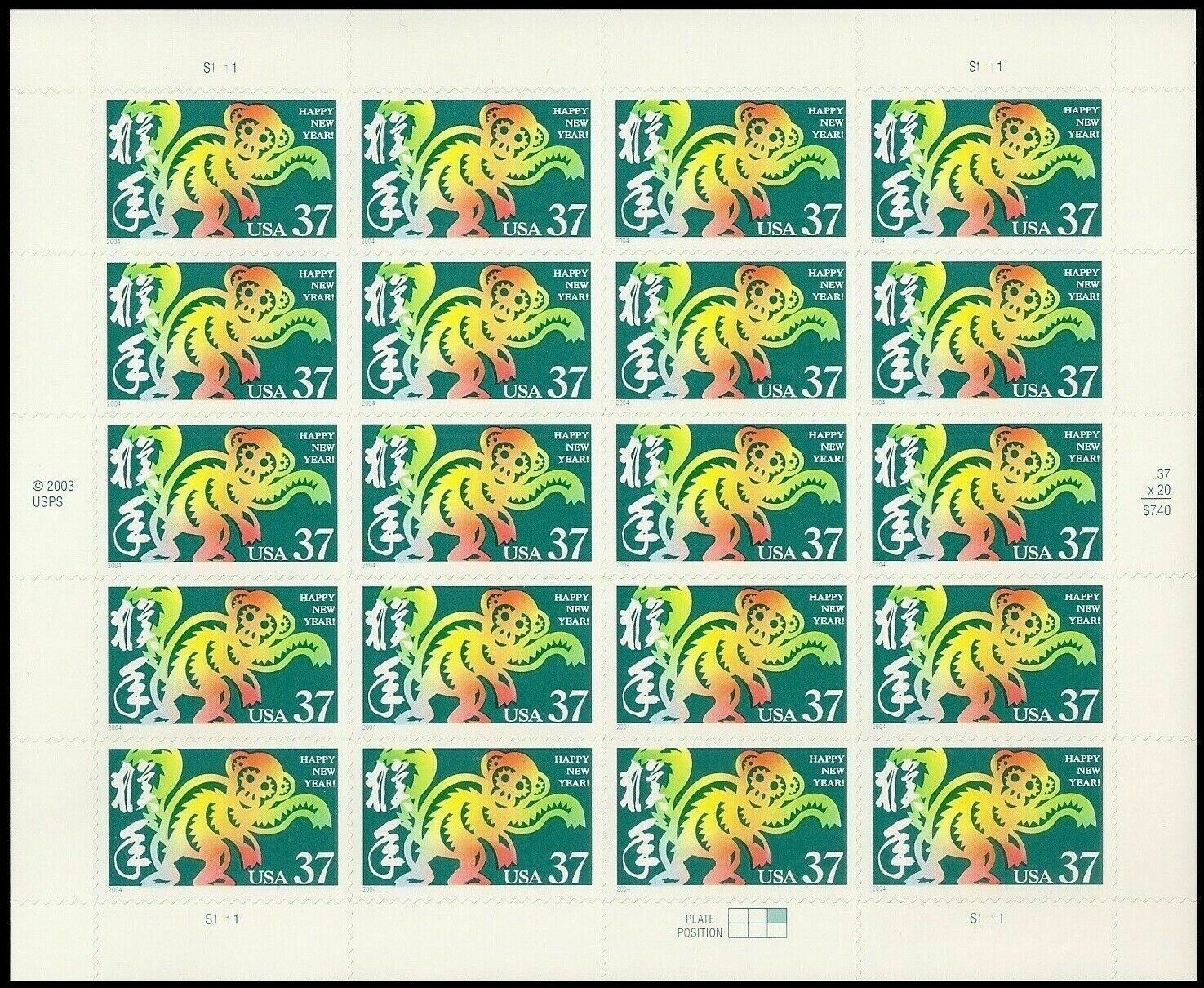 Chinese New Year of the Monkey Sheet of Twenty 37 Cent Postage Stamps Scott 3832
