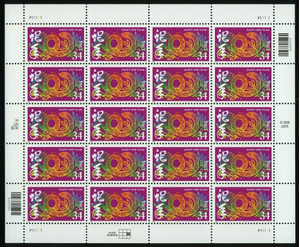 Chinese New Year of the Snake Sheet of Twenty 34 Cent Postage Stamps Scott 3500