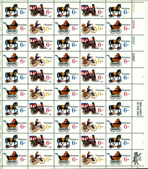 Christmas Antique Toys Sheet of Fifty 6 Cent Postage Stamps Scott 1415-18