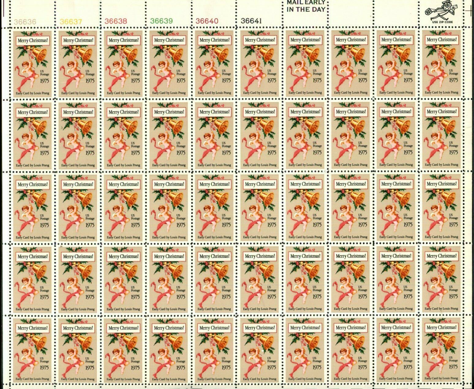 Christmas Card by Louis Prang Sheet of Fifty 10 Cent Postage Stamps Scott 1580