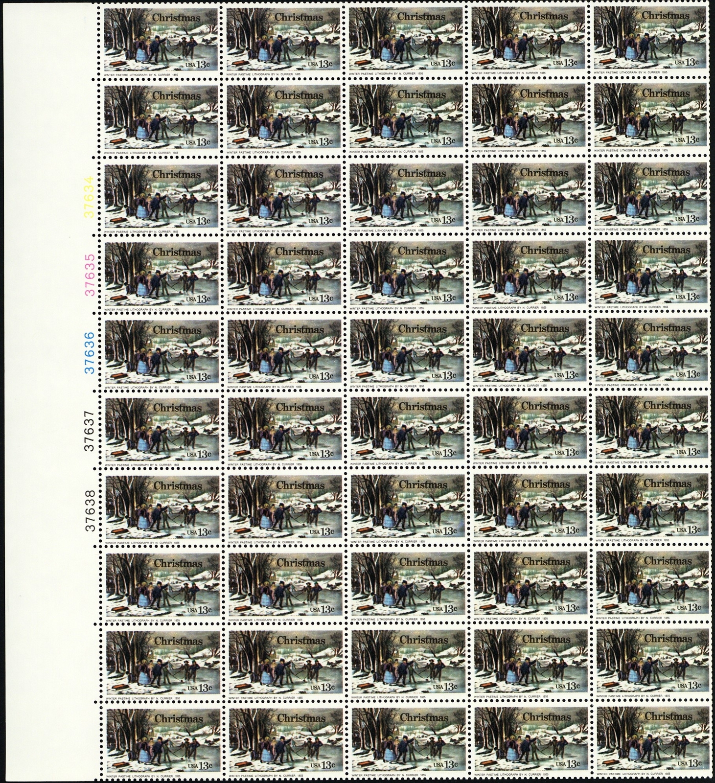 Christmas Currier and Ives Sheet of 50 of Fifty 13 Cent Stamps Scott 1703