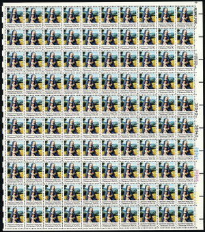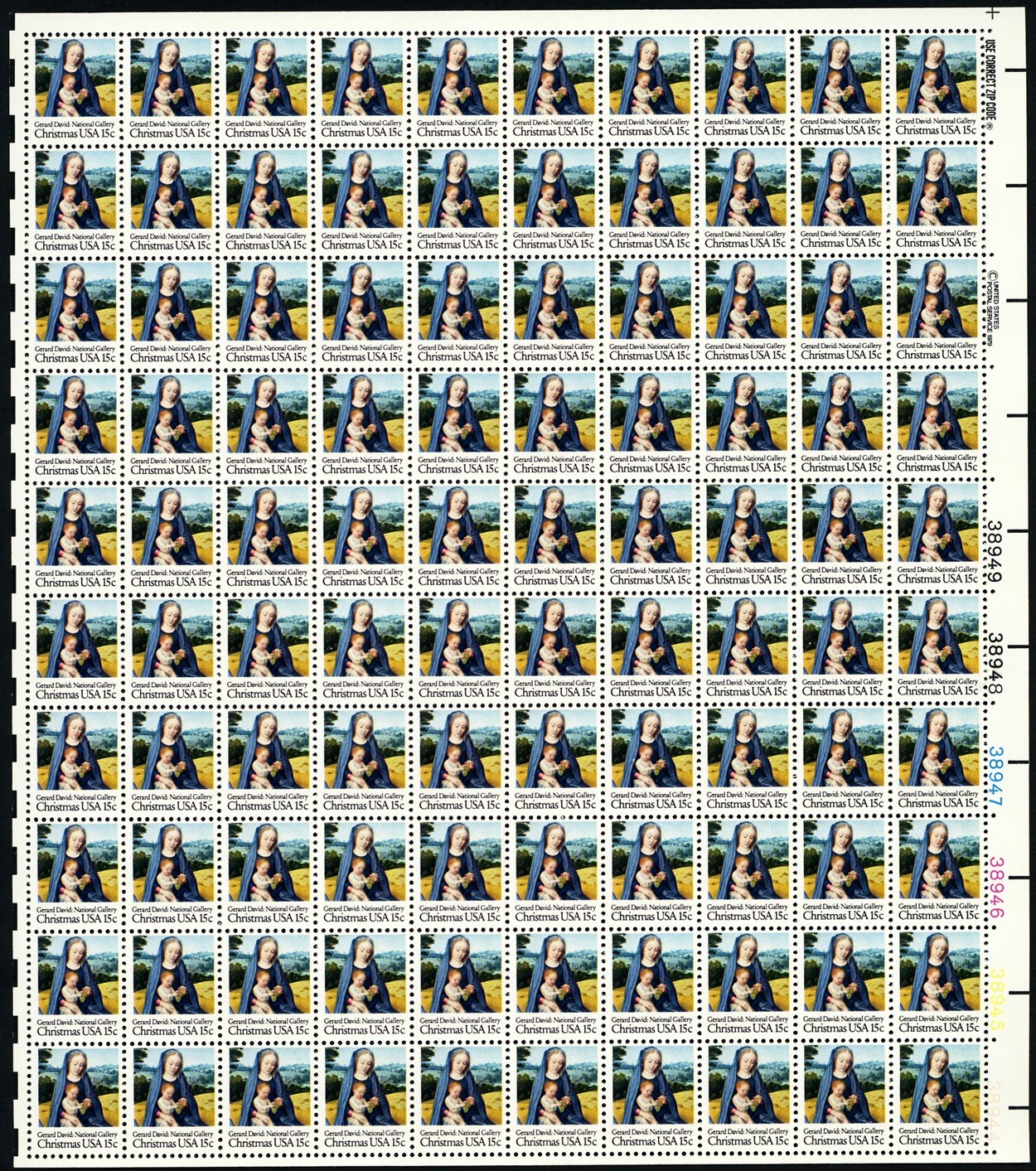 Christmas Madonna and Child Horse Sheet of 100 - 15 Cent Stamps Scott 1799