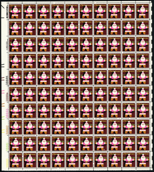 Christmas Santa Sheet of 100 - 15 Cent Postage Stamps Scott 1800