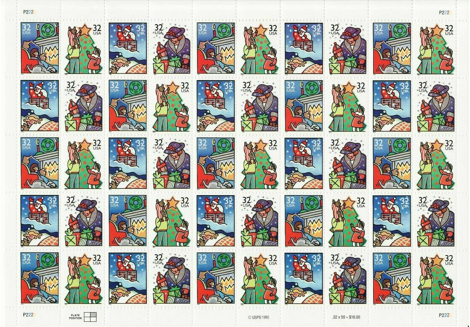 Christmas Sheet of 50 of Fifty 32 Cent Postage Stamps Scott 3108-11