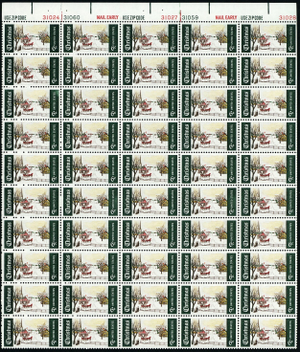 Christmas Sheet of Fifty 6 Cent Postage Stamps Scott 1384