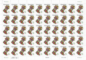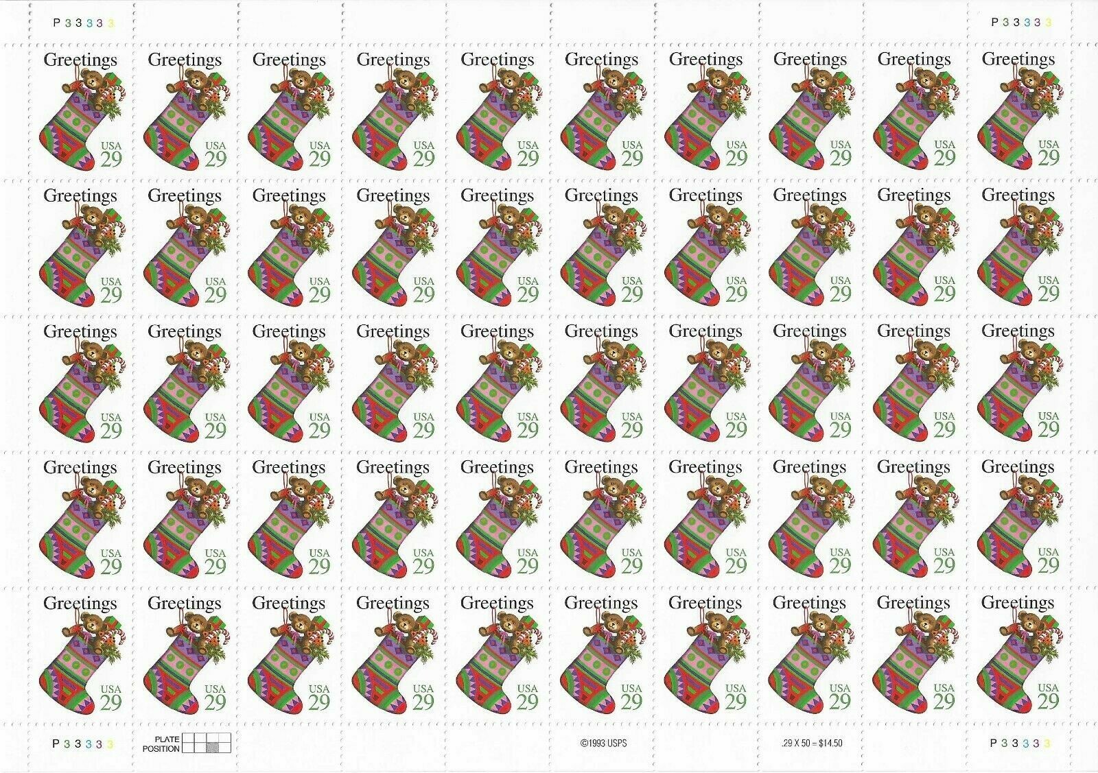 Christmas Stocking Sheet of Fifty 29 Cent Postage Stamps Scott 2872