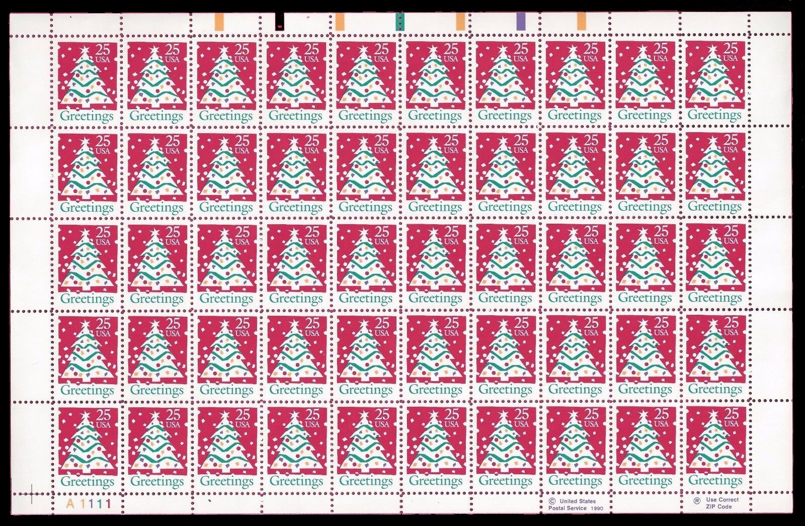 Christmas Tree Contemporary Sheet of 50 of Fifty 25 Cent Stamps Scott 2515