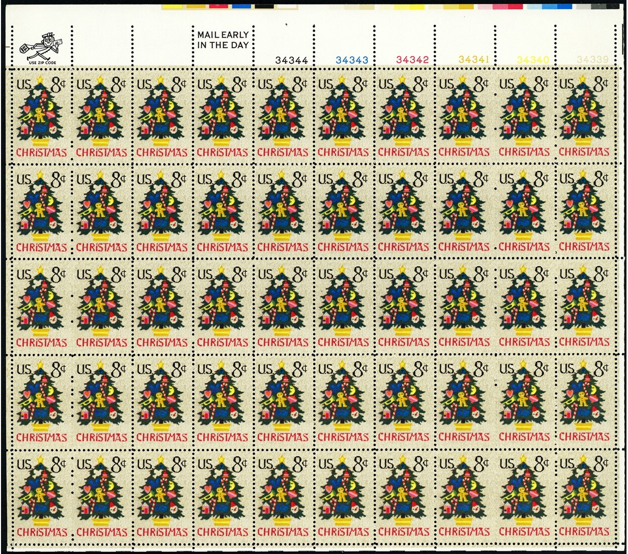 Christmas Tree Sheet of Fifty 8 Cent Postage Stamps Scott 1508