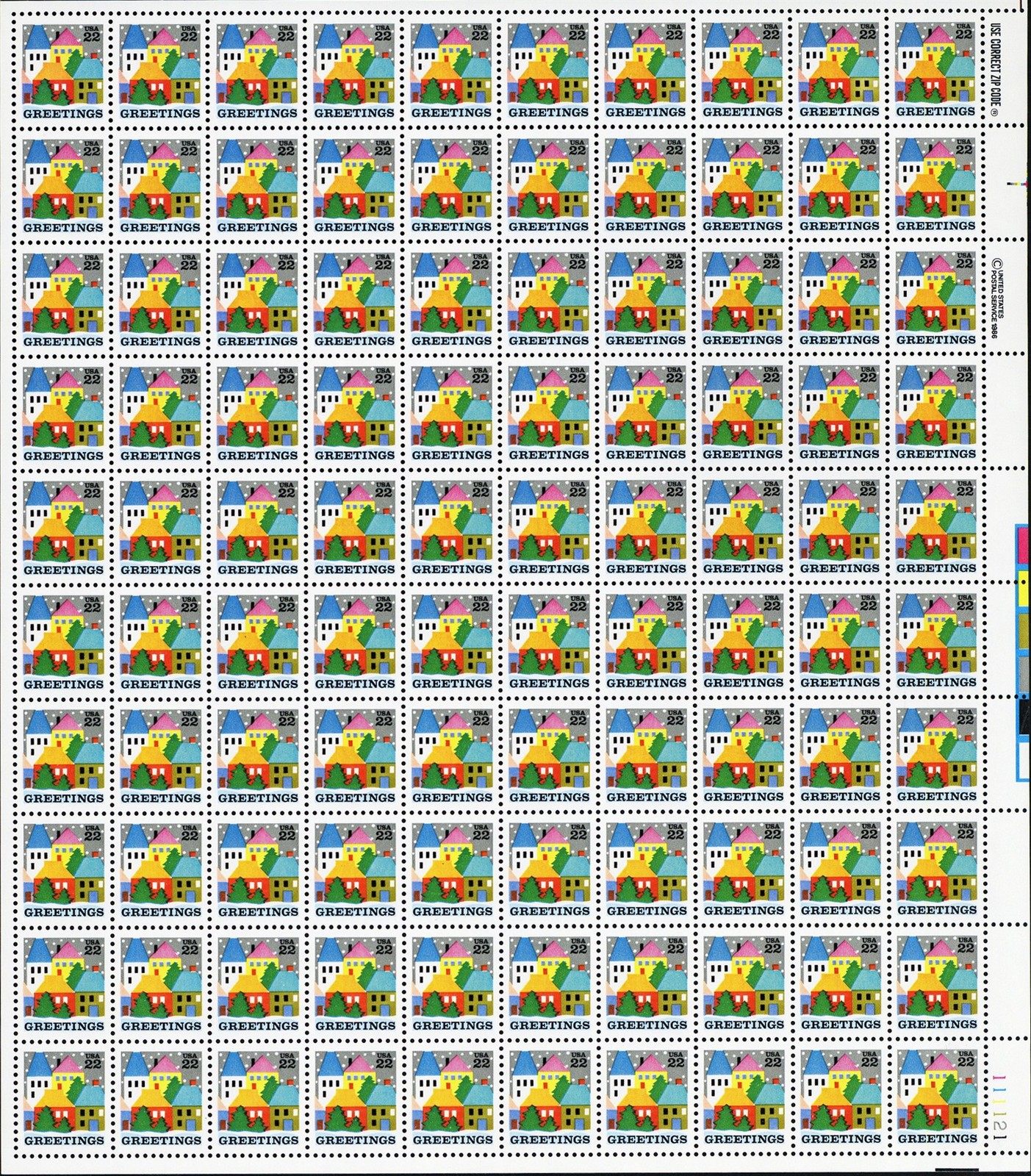 Christmas Winter Village Scene Sheet of 100 - 22 Cent Postage Stamps Scott 2245