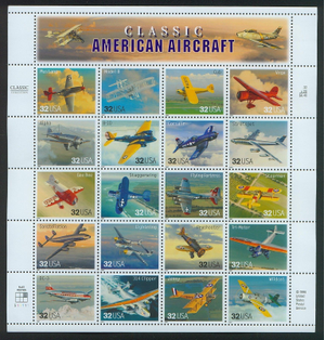 Classic American Aircraft Sheet of Twenty 32 Cent Stamps Scott 3142a