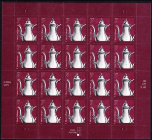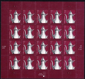 Coffeepot Sheet of Twenty 3 Cent Postage Stamps Scott 3754