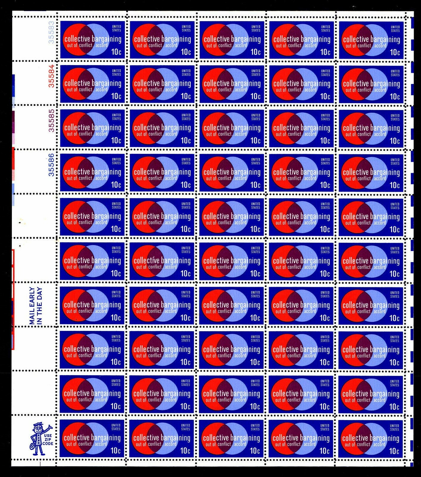 Collective Bargaining Sheet of Fifty 10 Cent Postage Stamps Scott 1558