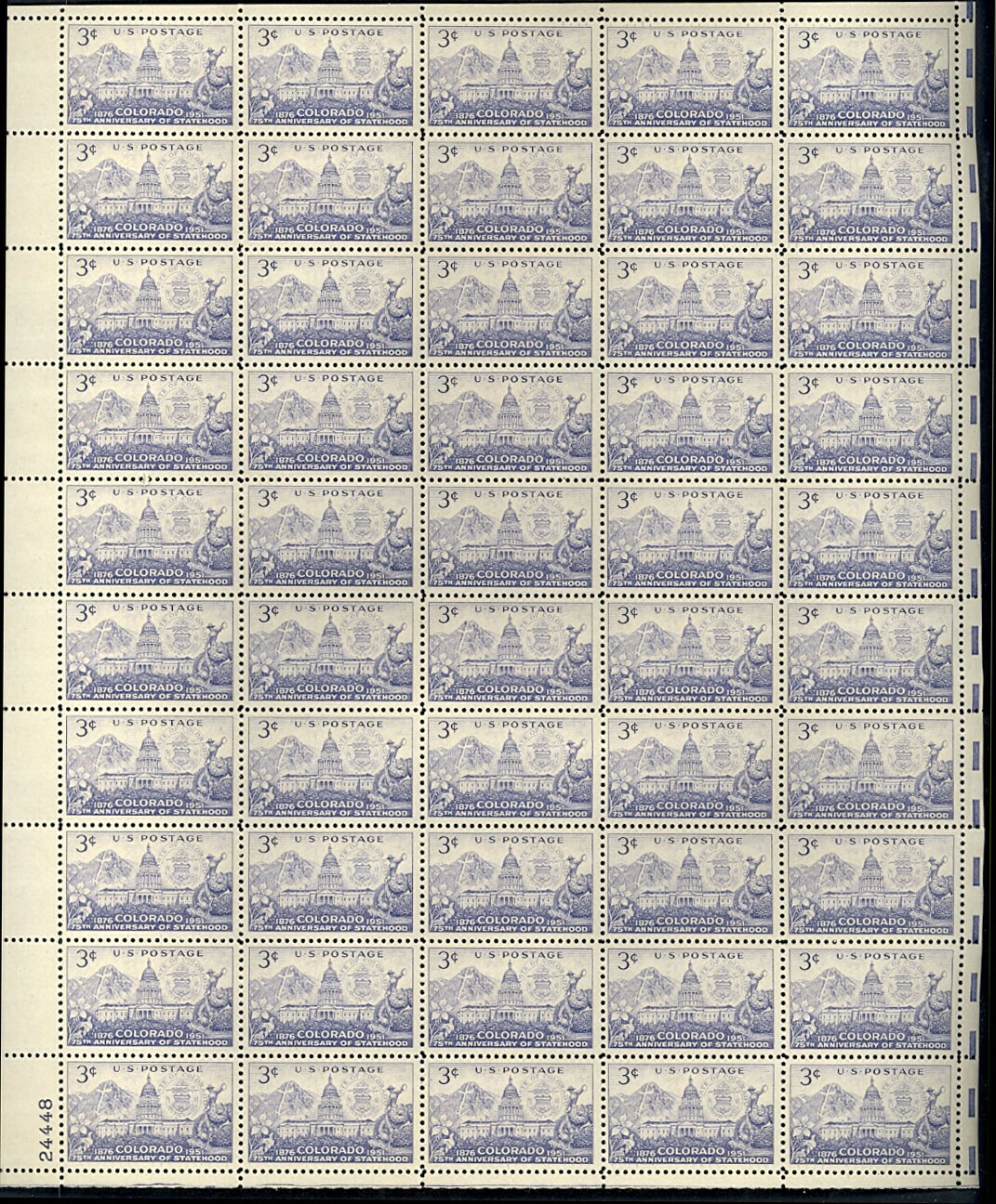 Colorado State Capital Sheet of Fifty 3 Cent Postage Stamps Scott 1001