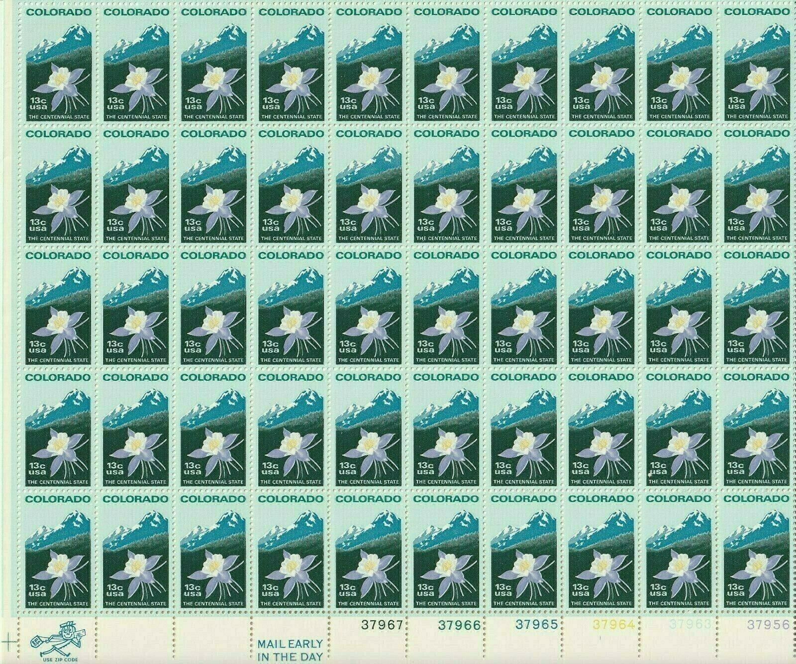 Colorado Statehood Sheet of Fifty 13 Cent Postage Stamps Scott 1711