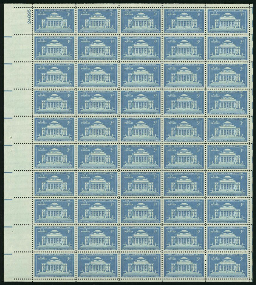 Columbia University 200th Anniversary Sheet of Fifty 3 Cent Stamps Scott 1029