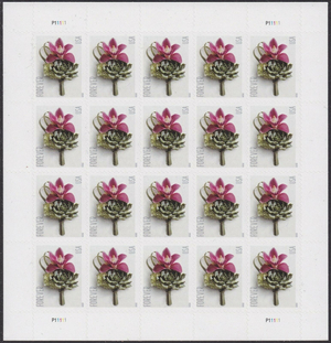 Contemporary Boutonniere Sheet of 20 Current Rate Wedding Stamps Scott 5457