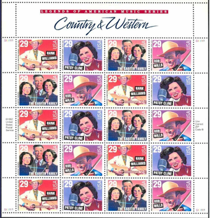 Country and Western Music Legends 29 Cent Sheet of 20 Postage Scott 2771-74