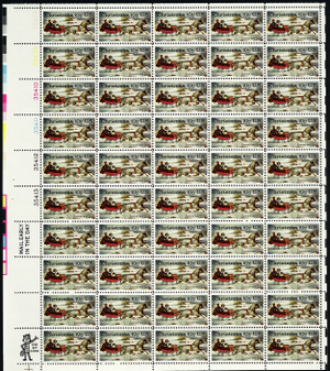 Currier and Ives Christmas Sheet of Fifty 10 Cent Postage Stamps Scott 1551