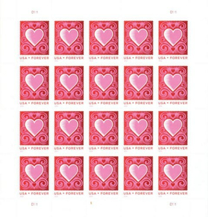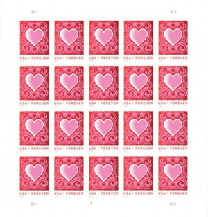 Cut Paper Heart Love Series - Sheet of 20 Current Rate Stamps Scott 4847