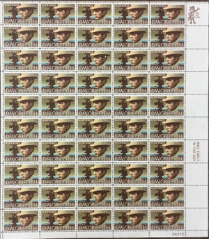 D. W. Griffith Sheet of Fifty 10 Cent Postage Stamps Scott 1555