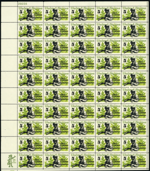 Davy Crockett Sheet of Fifty 5 Cent Postage Stamps Scott 1330