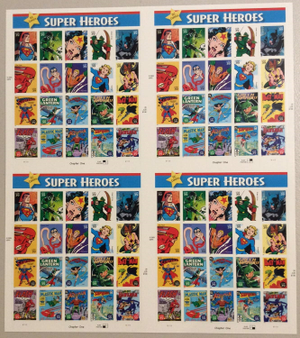 DC Comics 39 Cent Uncut Press Pane of 4 Complete Sheets of 20 Postage Stamps Ea